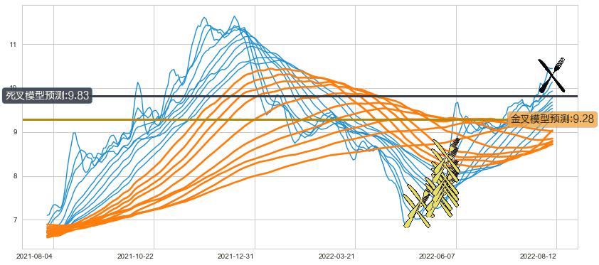➢ 10小时均线于(2022-08-11: 10.27)形成【死叉】基于【死叉历史模型】预测死叉后最低波谷价格: 9.83, 死叉后最低价格10.15,尚未达到预测最低波谷价格, 预期继续下跌