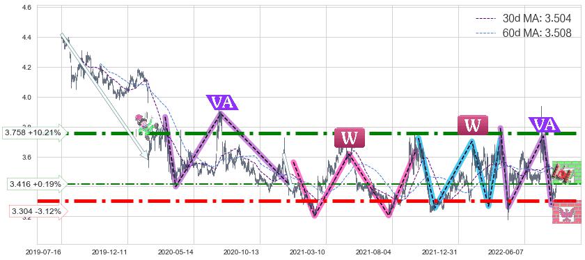 ♘ 支撑价格位3.304,可信任强度97.14%,距离最后交易2022-08-12形成的收盘价格3.410相差 -3.12%