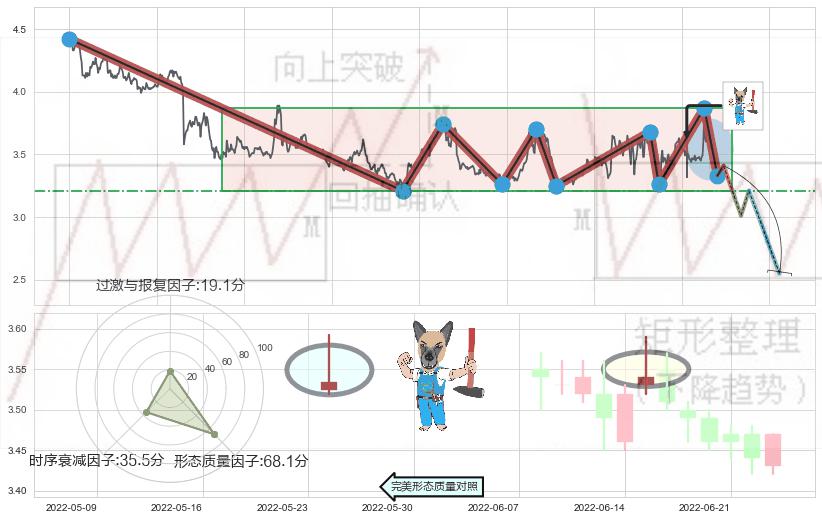➢ 空方炮 🔜 下跌矩形整理临近支撑猜想转换阻力下跌 综合量化分数:47.47 【中性】
