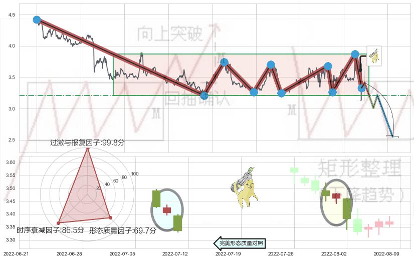 ➢ AI智能: 预测【多方力量耗尽】,矩形中继整理向下突破,预测将在2022-08-26突破矩形提供的颈线