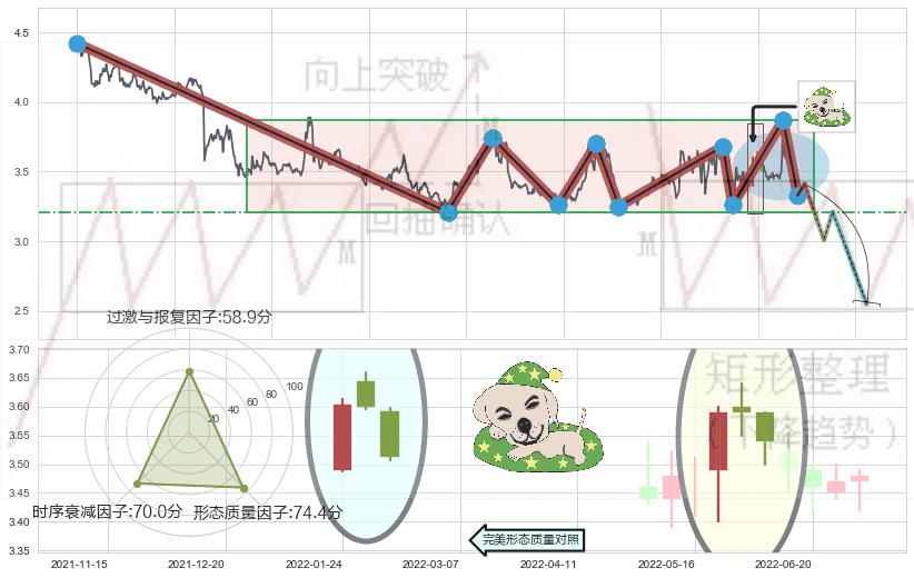 ➢ 黄昏之星(夜星) 🔜 下跌矩形整理临近支撑猜想转换阻力下跌 综合量化分数:43.58 【偏空】