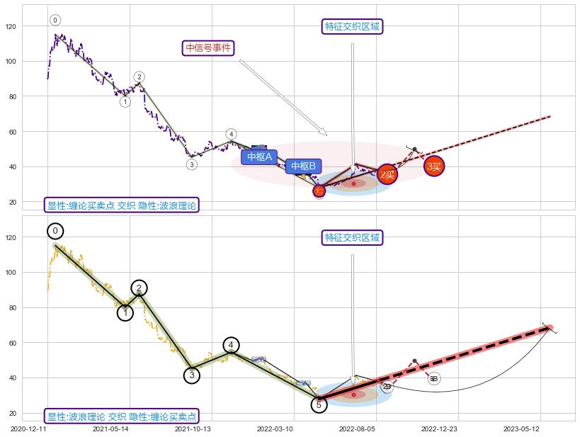 ➣ 缠论买卖点:下降缠:猜想2买趋势延续,蓄力上涨至3买(大周期趋势均值回复中的小周期趋势跟踪)