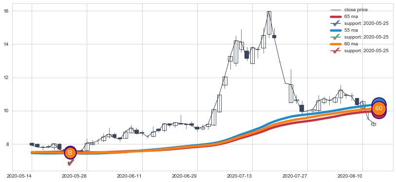 👍 尚未达到多条均线预测的最高波峰价格的平均值, 预期继续上涨