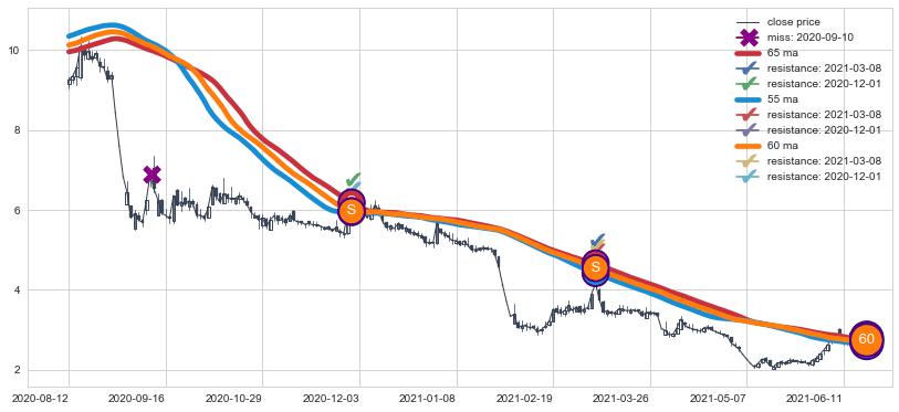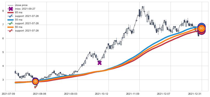 ➣ 65小时均线于(2021-12-29: 6.50)形成【死叉】基于【死叉历史模型】预测死叉后最低波谷价格: 5.74, 死叉后最低价格0.7100,已经下跌超出预测最低波谷价格, 预期反弹