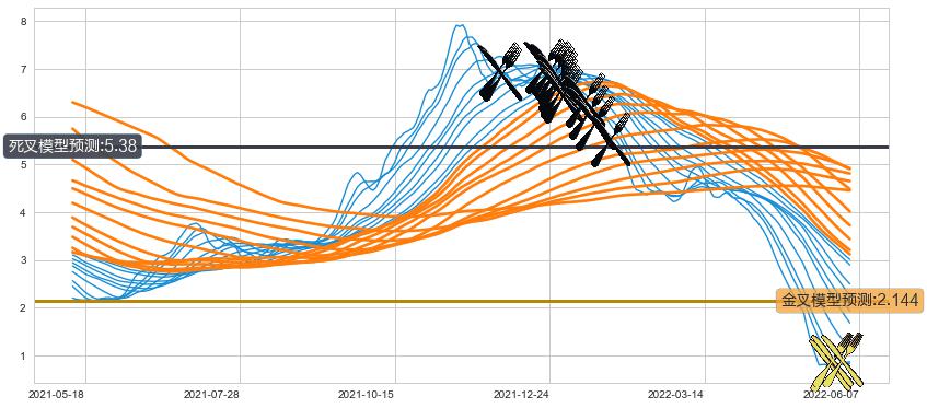 ➣ 80小时均线于(2022-01-11: 6.32)形成【死叉】基于【死叉历史模型】预测死叉后最低波谷价格: 5.33, 死叉后最低价格0.7100,已经下跌超出预测最低波谷价格, 预期反弹