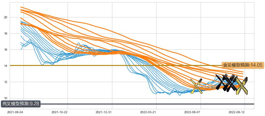 ➣ 34小时均线于(2022-07-11: 11.94)形成【死叉】基于【死叉历史模型】预测死叉后最低波谷价格: 9.99, 死叉后最低价格10.95,尚未达到预测最低波谷价格, 预期继续下跌