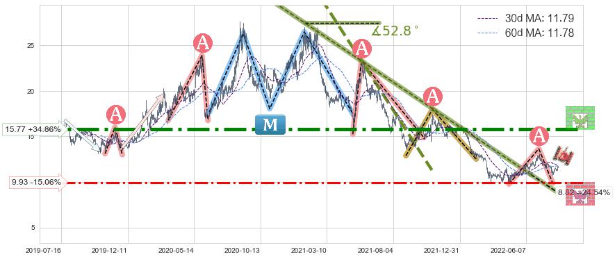 ♘ 阻力价格位15.77,可信任强度86.47%,距离最后交易2022-08-12形成的收盘价格11.69相差 +34.86%