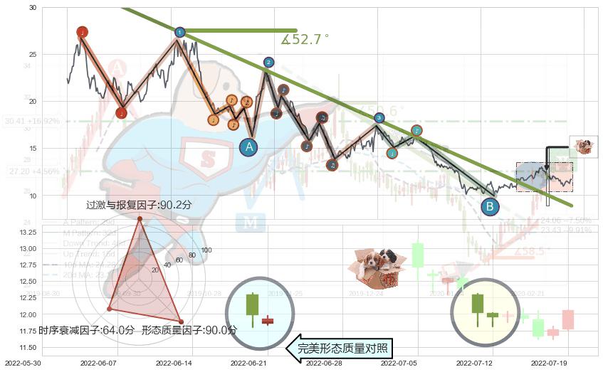 ➢ 🕰 价格走势在2022-07-11至2022-07-12期间形成底部尽头线(上山虎),残存影响值:3.34