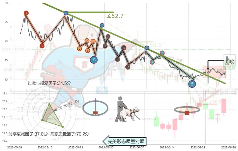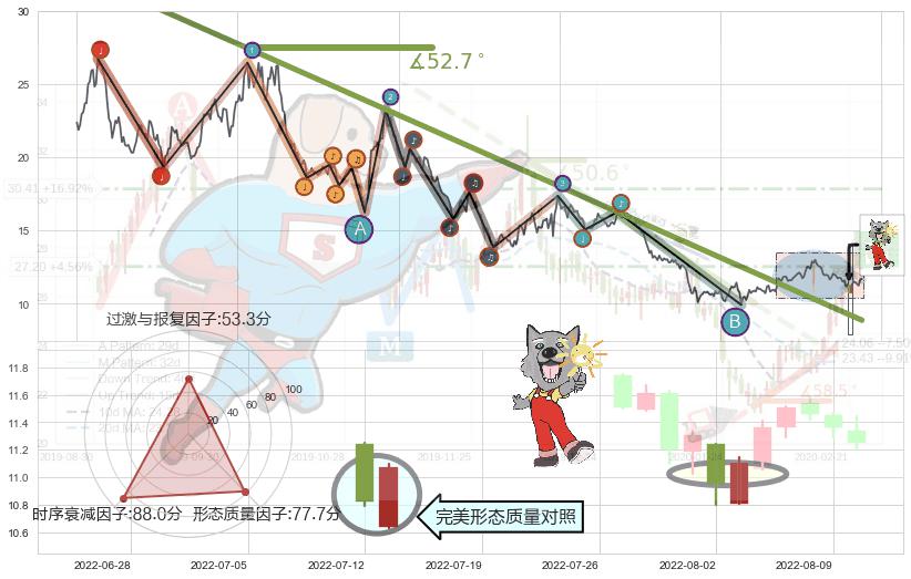 ➢ 2020-08-27-2022-07-01下跌趋势存在反转上涨[机会],其原下跌趋势的阻力位(8.88)已被突破[强支撑信号],原下跌趋势角度: 52.7˚