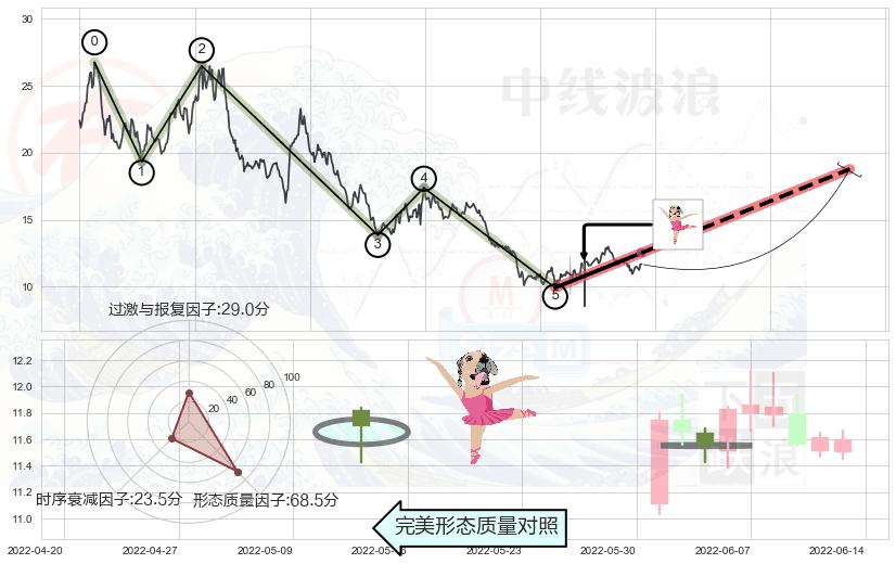 ➣ 曙光初现形态 + 波浪理论下跌浪:浪5反弹拐点信号叠加后【反向回撤率】极低,【看多】信号叠加【存续影响极大】