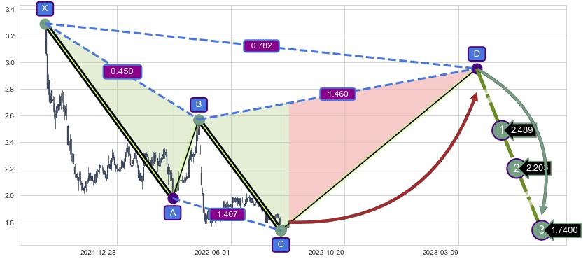 ➣ D点拟合预测价格2.952,距离最后交易收盘价格1.8000相差 +64.01%