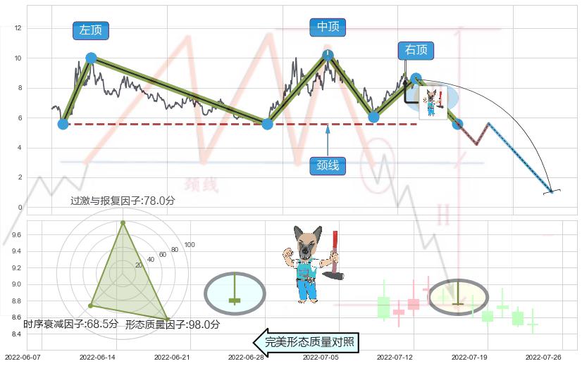 ➢ 🕰 价格走势在2022-07-15至2022-07-15期间形成看跌(高位倒锤头)流星线,残存影响值:-7.63