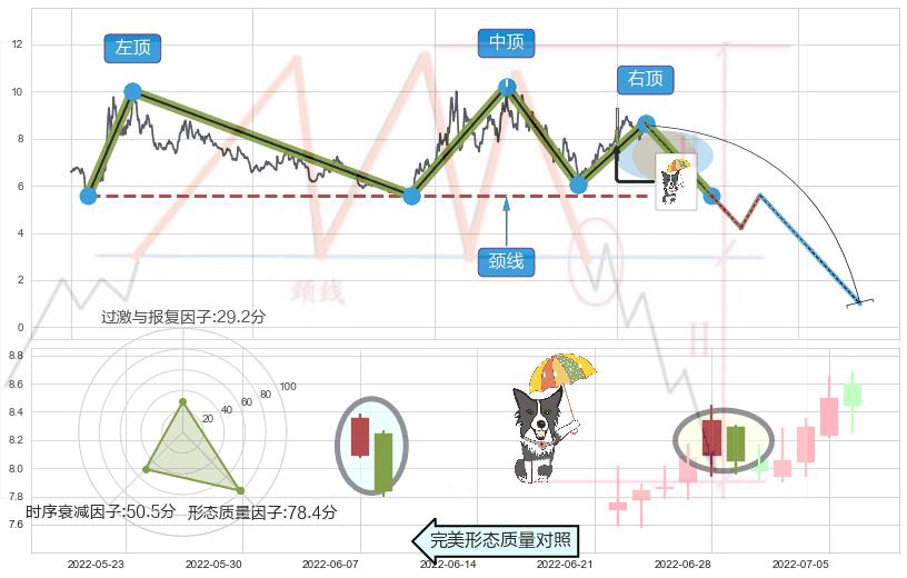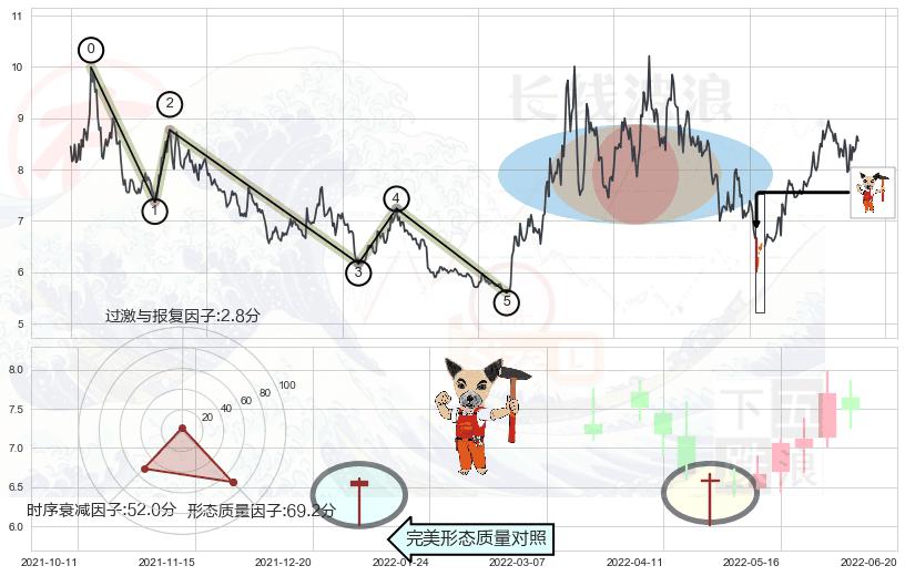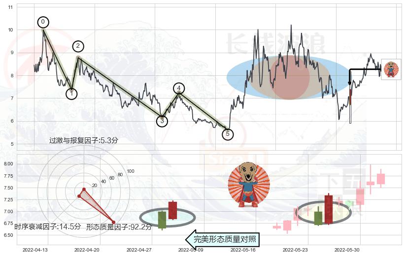 ➢ 🕰 价格走势在2022-05-30至2022-06-13期间形成两红夹一黑,残存影响值:4.25