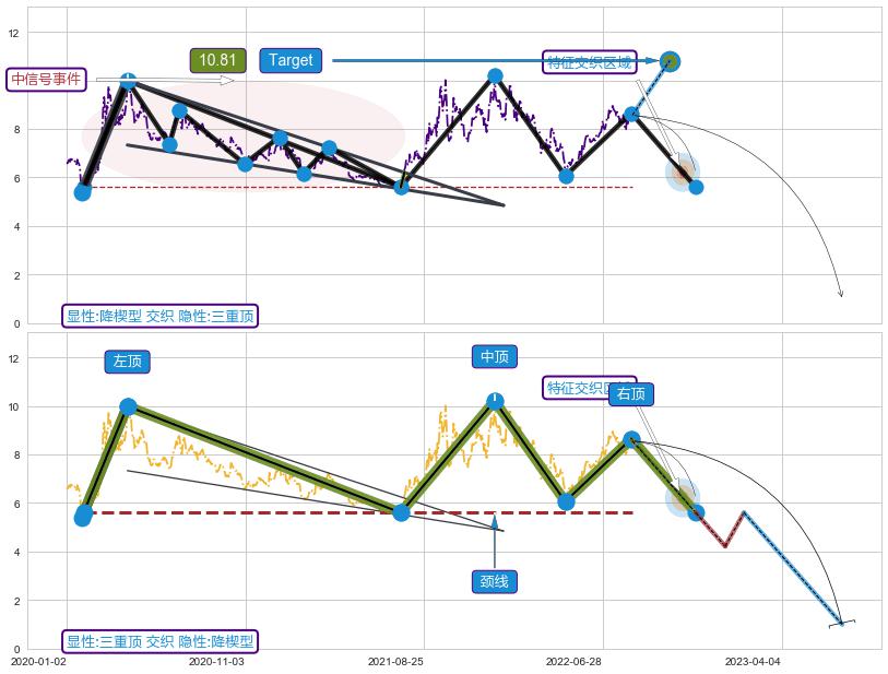 ➣ 淡友反攻 + 三重顶临近支撑猜想转换阻力下跌信号叠加后【目标达成率】中等,【看空】信号叠加【存续影响中等】