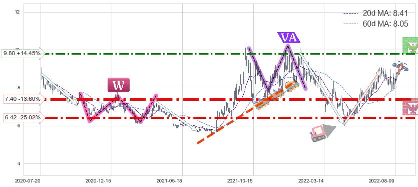 ♘ 支撑价格位7.40,可信任强度86.32%,距离最后交易2022-08-12形成的收盘价格8.56相差 -13.60%