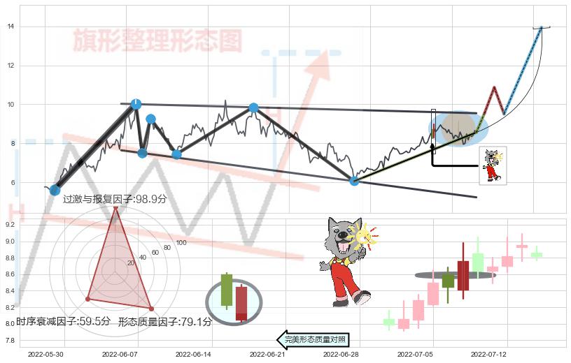 ➣ 【未确认突破,预测即将形成突破】降⚑旗形起点:2021-07-20, 预测突破点:2022-08-19,形态共265交易日