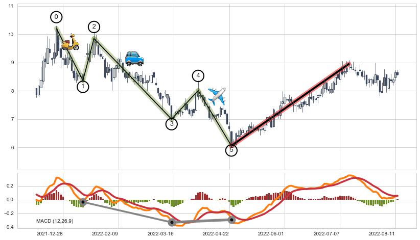 ➣ AI预测: 假定反转启动后, 第❸目标位置(2022-11-25, 8.95)