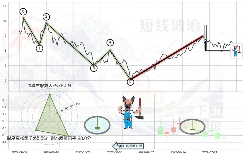 ➢ 🕰 价格走势在2022-07-14至2022-07-20期间形成高档五阴线,残存影响值:-5.20