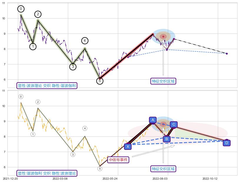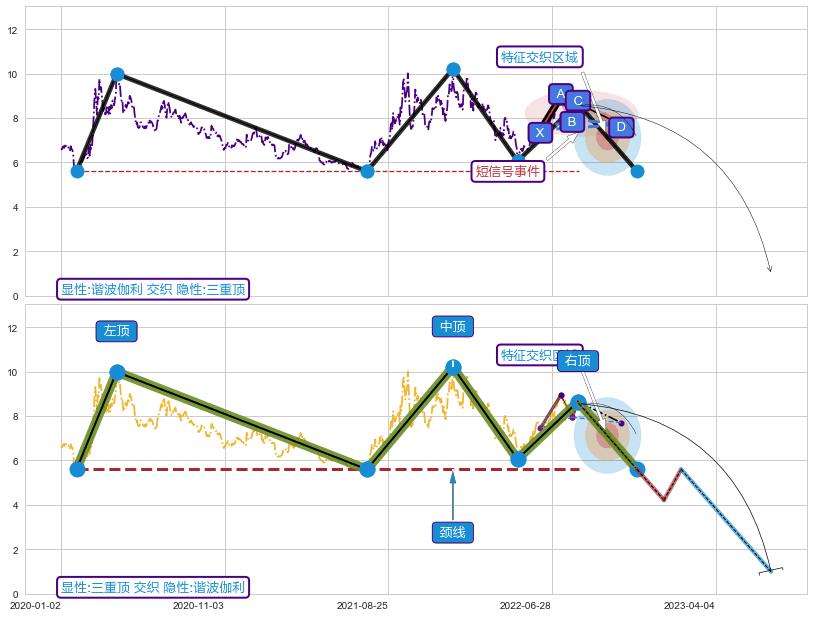 ➢ 谐波伽利属【短级别信号事件】三重顶属【长级别信号事件】长短周期组合信号事件, 短长事件长度比7.78%