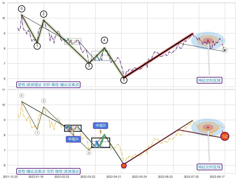 ➢ 【中枢A】:2022-02-18-2022-03-02,中枢由6笔构成,共9交易日, ZG=8.55, ZD=8.49