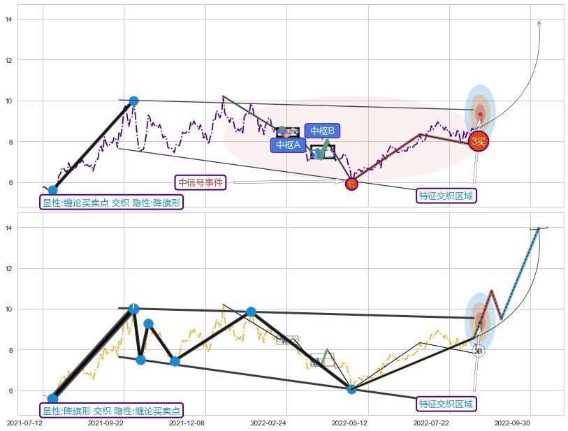 ➣ 缠论买卖点:下降缠:临近3买-猜想击穿突破3买后延续上涨趋势(大周期趋势均值回复后小周期持续趋势跟踪)