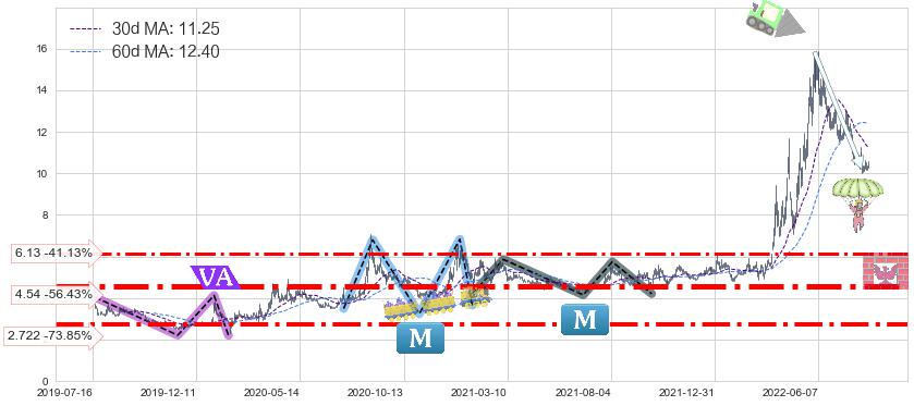 ♘ 支撑价格位4.54,可信任强度97.95%,距离最后交易2022-08-12形成的收盘价格10.41相差 -56.43%