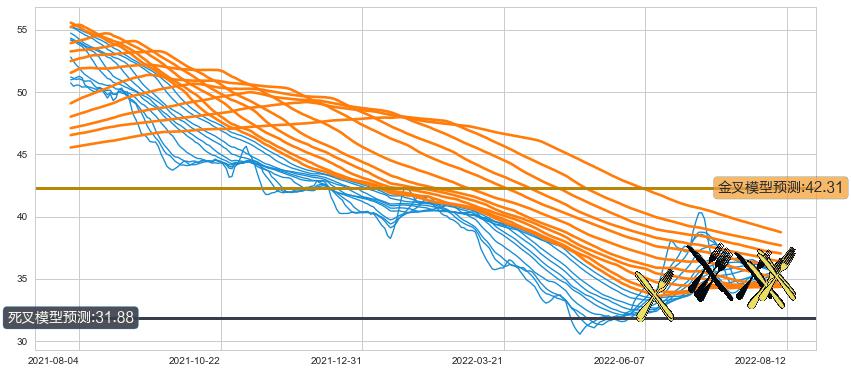 ➣ 40小时均线于(2022-07-08: 35.42)形成【死叉】基于【死叉历史模型】预测死叉后最低波谷价格: 32.42, 死叉后最低价格33.10,尚未达到预测最低波谷价格, 预期继续下跌