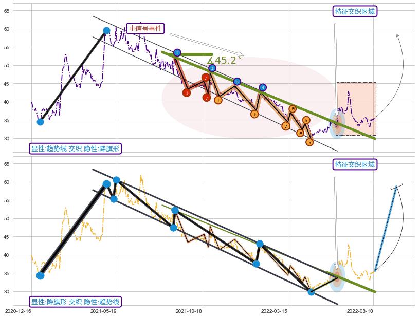 ➢ 趋势线属【中级别信号事件】降旗形属【长级别信号事件】中长周期组合信号事件,中长事件长度比58.74%