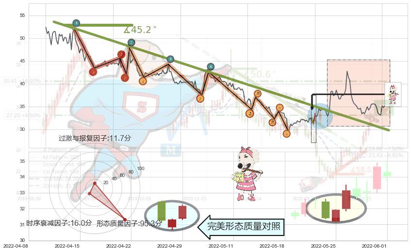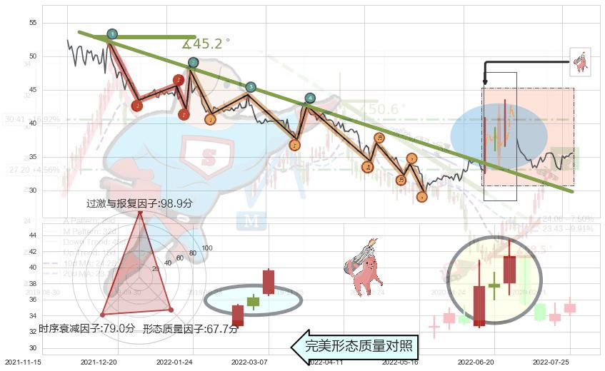 ➢ 2021-08-03-2022-05-25下跌趋势存在反转上涨[机会],其原下跌趋势的阻力位(29.80)已被突破[强支撑信号],原下跌趋势角度: 45.2˚