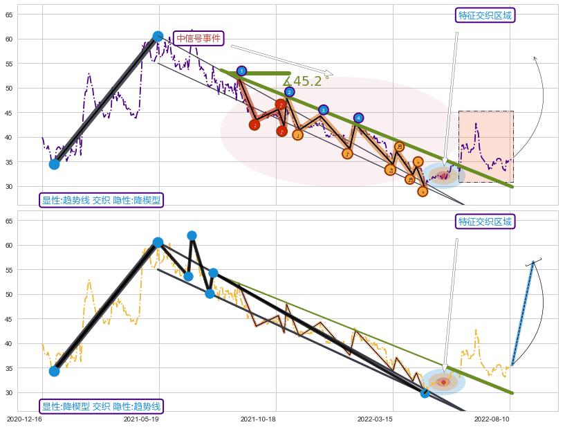➢ 趋势线属【中级别信号事件】降楔型属【长级别信号事件】中长周期组合信号事件,中长事件长度比64.06%