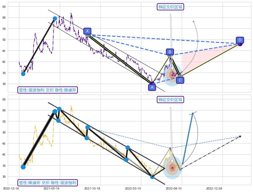 ➢ 谐波伽利与降旗形信号事件周期长度级别相同,同周期信号事件