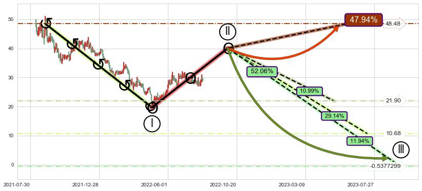 ➢ AI预测: 假定反转启动后, 第❷目标位置(2022-10-18, 28.68)