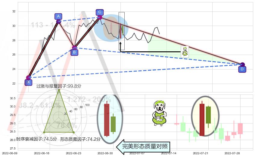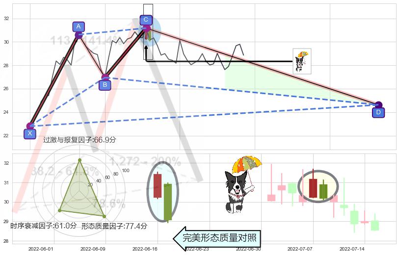 ➢ 🕰 价格走势在2022-07-13至2022-07-15期间形成两黑夹一红,残存影响值:-3.80