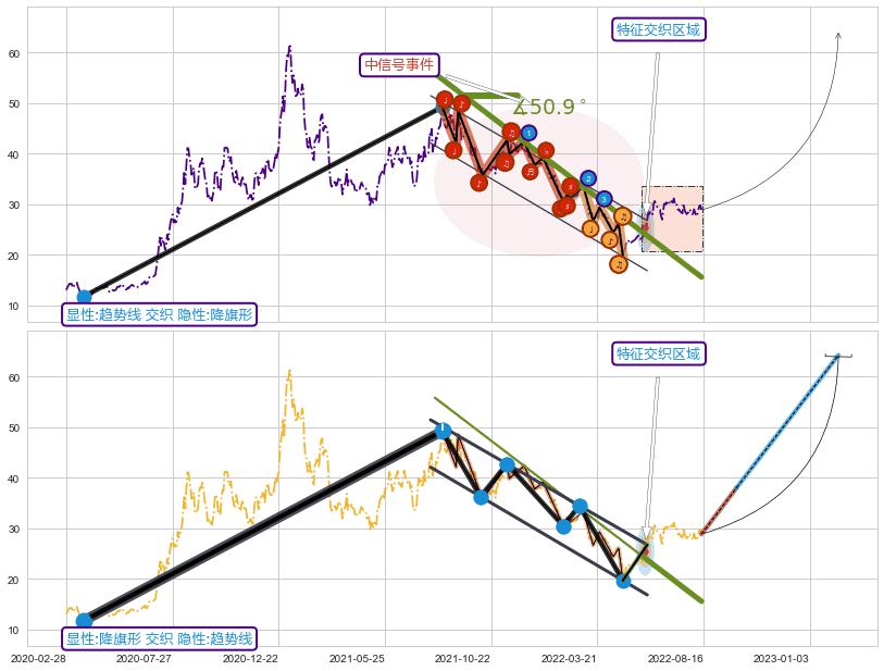 ➢ 趋势线属【中级别信号事件】降旗形属【长级别信号事件】中长周期组合信号事件,中长事件长度比37.03%