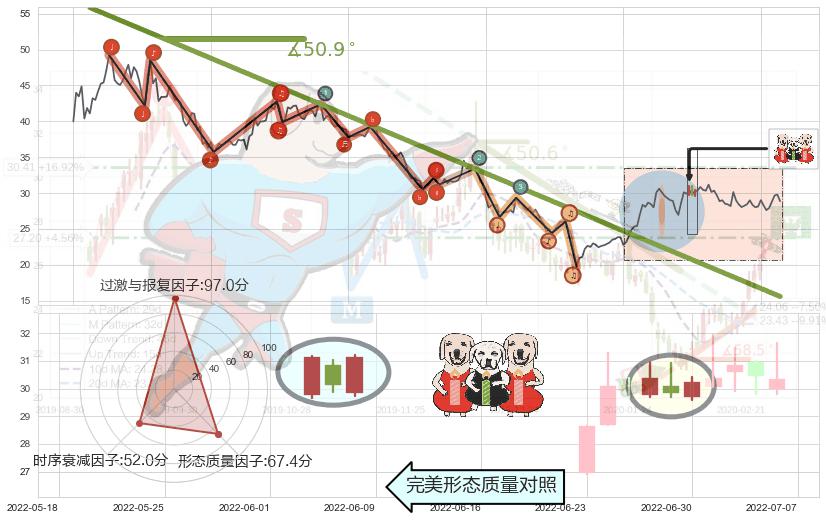 ➢ 🕰 价格走势在2022-06-28至2022-06-30期间形成两红夹一黑,残存影响值:4.37