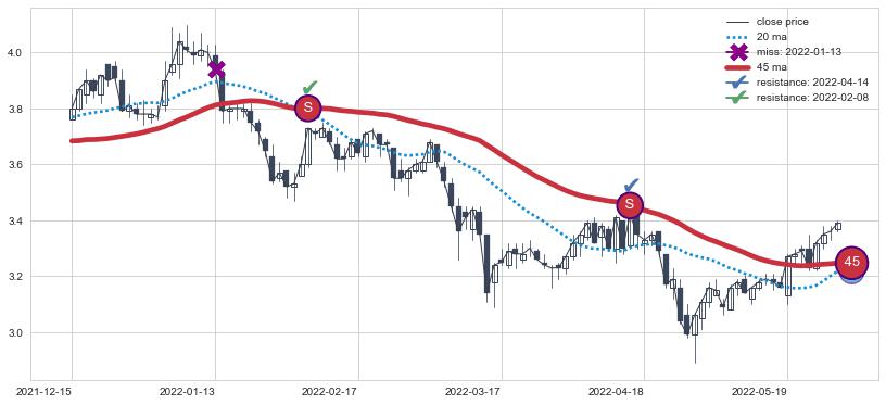 ➣ 45小时均线于(2022-05-24: 3.239)形成【金叉】基于【金叉历史模型】预测金叉后最高波峰价格: 3.976, 金叉后最高价格3.750,尚未达到预测最高波峰价格, 预期继续上涨