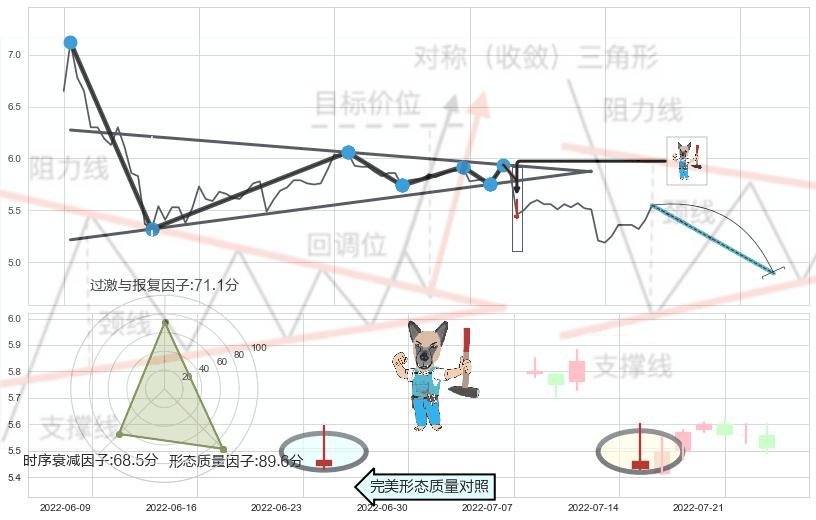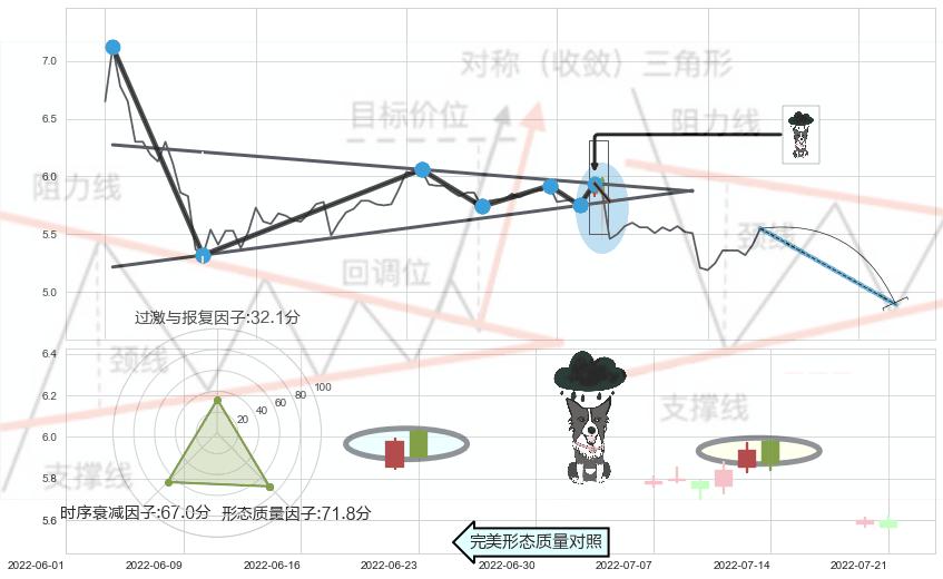 ➢ 【卖1】: 激进型 卖点→(2022-07-15: 5.78 )形成突破下降【对称】三角形整理【整理】形态