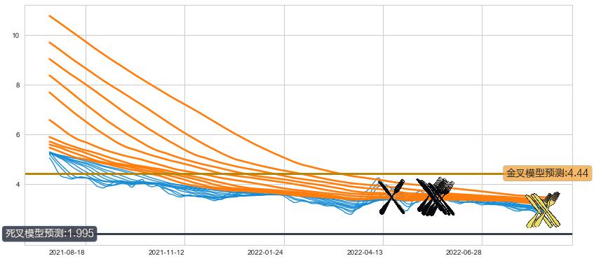 ➣ 34小时均线于(2022-04-19: 3.430)形成【死叉】基于【死叉历史模型】预测死叉后最低波谷价格: 2.303, 死叉后最低价格2.780,尚未达到预测最低波谷价格, 预期继续下跌