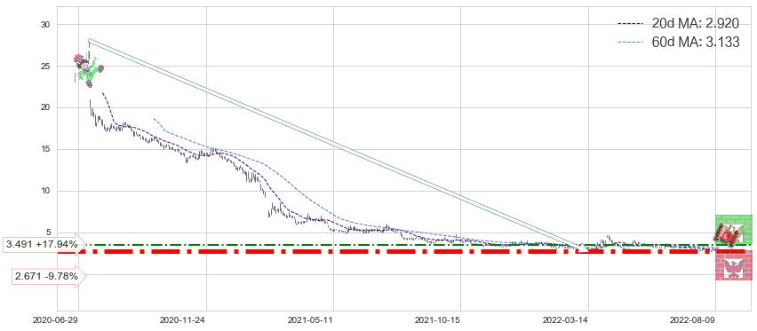 ♞ 20日均线:2.920,60日均线:3.133→ 快线<慢线