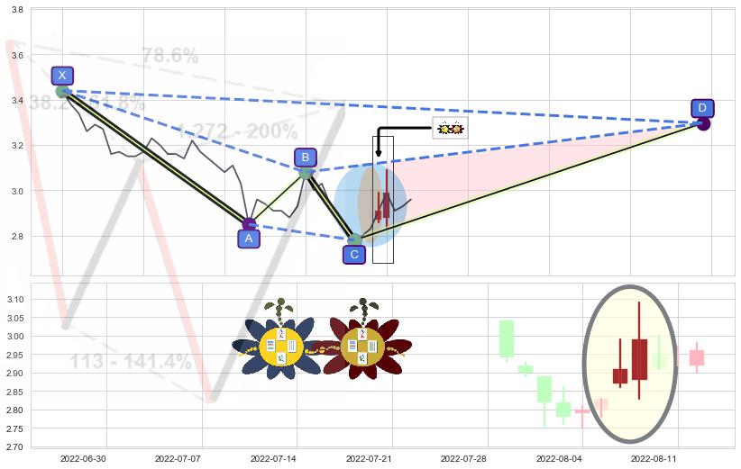 ➣ D点拟合预测价格3.296,距离最后交易收盘价格2.960相差 +11.36%