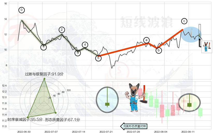 ♘ 阻力价格位13.43,可信任强度71.99%,距离最后交易2022-08-12形成的收盘价格11.35相差 +18.33%