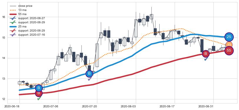 👍 尚未达到多条均线预测的最高波峰价格的平均值, 预期继续上涨