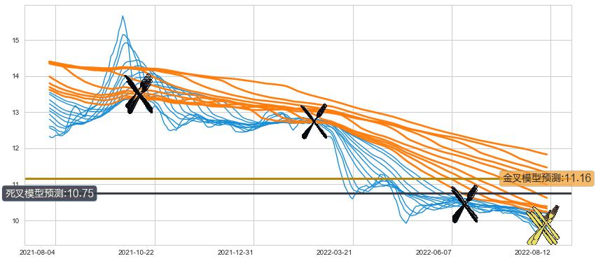 ➣ 30小时均线于(2022-06-15: 10.46)形成【死叉】基于【死叉历史模型】预测死叉后最低波谷价格: 9.70, 死叉后最低价格9.52,已经下跌超出预测最低波谷价格, 预期反弹