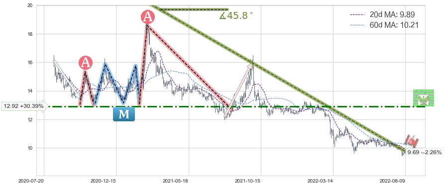 ♘ 阻力价格位12.92,可信任强度57.95%,距离最后交易2022-08-12形成的收盘价格9.91相差 +30.39%