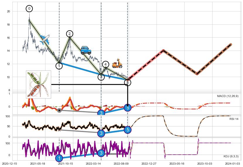 ➣ 波浪理论:猜想止跌 → 上涨 →【拐点】浪5已完成 → 大趋势均值回复