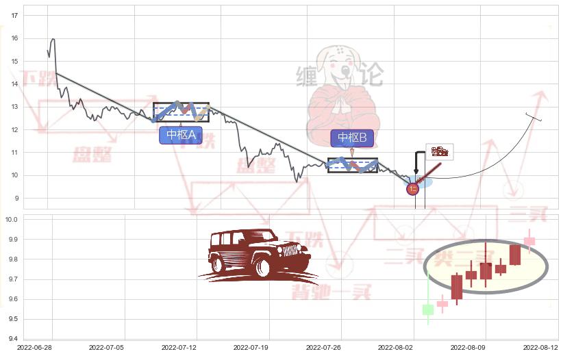 ➢ 收盘价(2022-08-11: 9.87 )→回踩→第一根k线低点(2022-08-01: 9.84 )