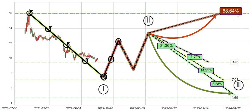 ➣ AI预测: 假定反转启动后, 第❸目标位置(2022-10-19, 10.72)