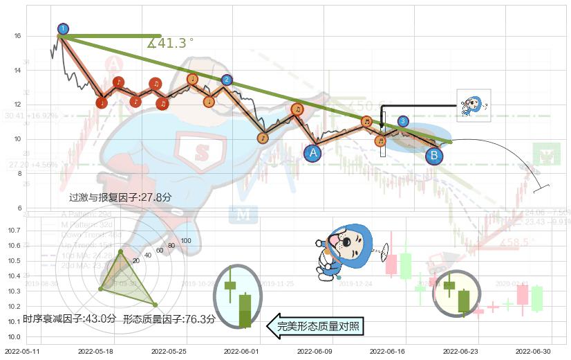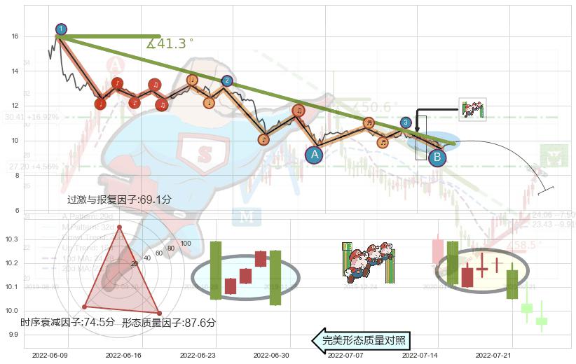 从2021-09-22至2022-08-11,共包含215个交易日,阶段股价下跌-45.31%,阶段股价变动位移路程比: 1 : 5,下跌趋势角度: 41.3