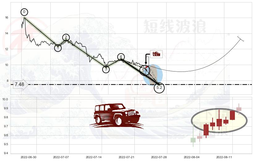 ➢ 5.1: 预测当前第5浪位置(2022-08-03, 9.52),仍然有下跌空间