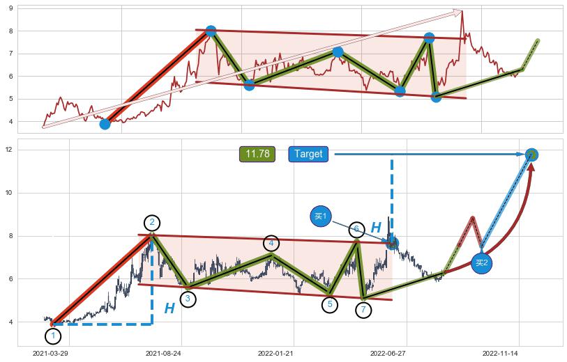 ➣ 最小中继整理涨幅→𝐇: 4.13 (𝐇旗杆的长度:旗杆起点→顶点)
